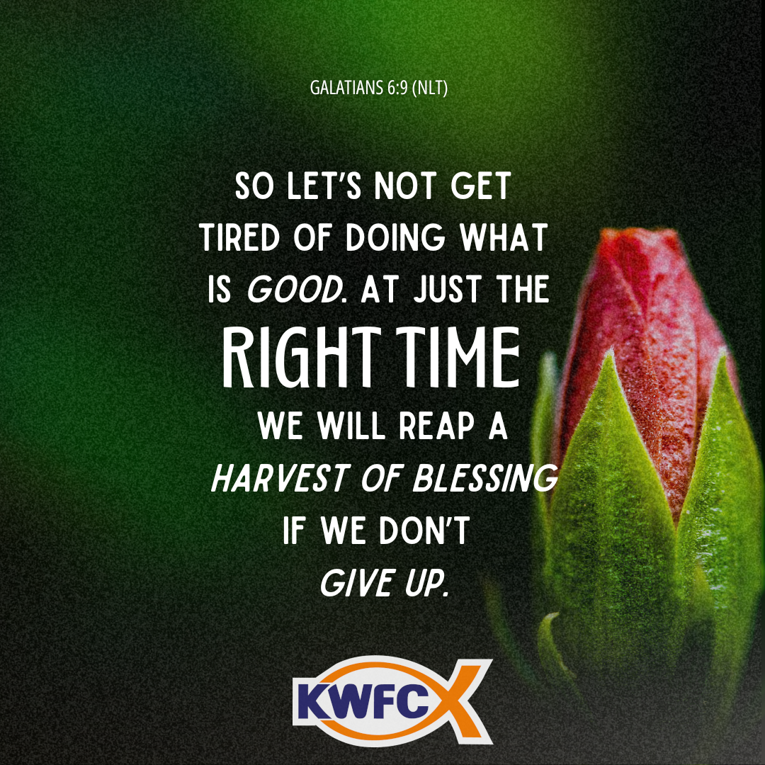 So let’s not get tired of doing what is good. At just the right time we will reap a harvest of blessing if we don’t give up. .