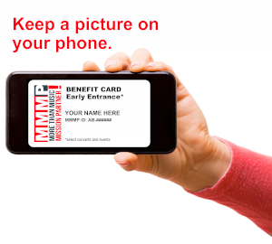 Remember to take this card with you to concerts and events that offer early entrance for MMMPs. (Please note that not every concert/event has an early entrance option.) We recommend using your phone to take a photo of your card and save it in your favorites. That way you will always have it with you, even if the paper card is misplaced.